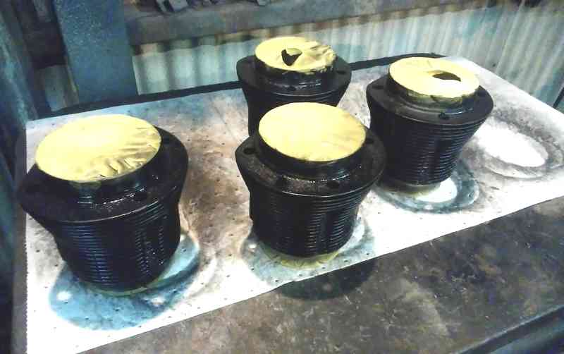 | 削るか交換するかで迷いに迷った結果、削る事に決めて腹をくくりました。どれくらい削れば良いか?キャリパーを当てながら慎重に開始です。アームが太いので安心して削りましたが、かなりの太さを削りました。ま〜それでも純正よりもかなり厚みがあるので問題ないでしょう。これでサクッと組んでこの作業は終わりと思ったのですが・・・・・。左のキャリパーのセンターが出てません。シムで調整するように書いてありますが、調整したいのはその逆の方向です。希望は約1mm!さて困った。色々と考えて秘策を思いつきました。結果は狙い通りで、バッチリセンターが出て一安心!達成感は半端ないですな〜〜〜。さ〜これでキャリパーのグリスアップして本組できます。一筋縄でいかないのは覚悟してましたが、何度も心が折れかけた私で御座います。14インチのポルシェアロイも装着不可ですし!まだまだ先は長いですぞ! |